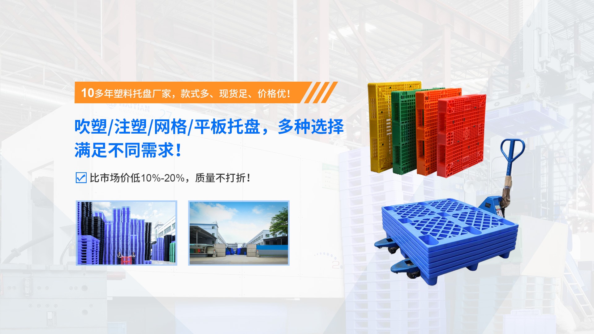 東莞市惠通塑膠制品有限公司老廠成立于2006年,是一家專業從事塑料托盤、塑料周轉箱、物流包裝容器 等塑膠制品研發(fā)、生產與銷售的高新技術企業。憑借十多年的行業深耕 ,我們已與多家知名上市公司建立長期穩(wěn)定的合作關系,產品廣泛應用于物流倉儲、食品加工、電子制造、醫藥化工 等行業。